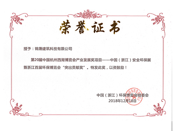 中国安全环保展暨浙江首届环保博览会突出贡献奖