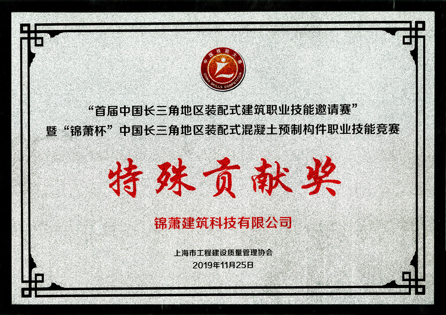 锦萧杯中国长三角地区装配式混凝土预制构件职业技能竞赛特殊贡献奖