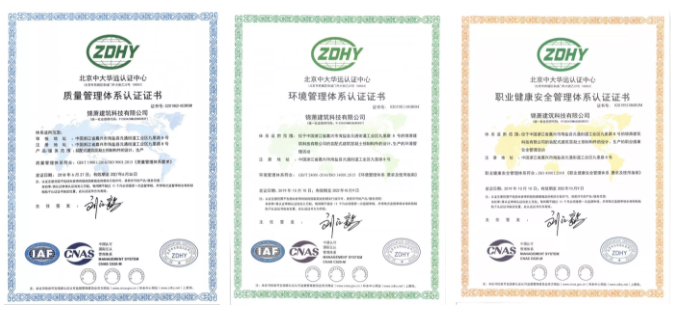 继率先完成ISO 9001:2015质量管理体系认证工作后,近日,锦萧建筑科技有限公司顺利通过ISO 14001:2015环境管理体系及ISO 45001:2018职业健康安全管理体系审核认证,至此,标志着公司三标一体化管理体系认证工作圆满完成。