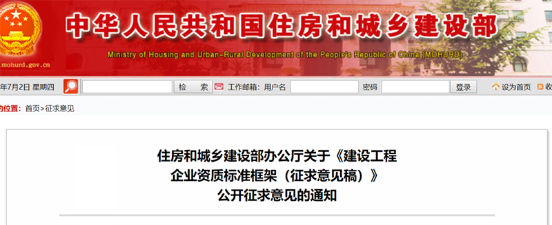 2020年7月2日,住建部发布《建设工程企业资质标准框架(征求意见稿)》。