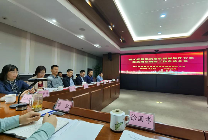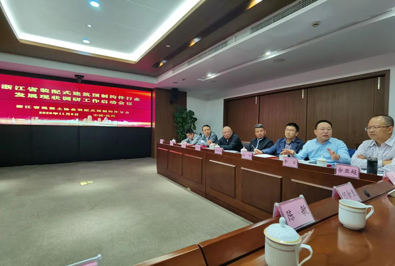 为全面了解我省装配式建筑预制构件行业发展现状,受浙江省建筑业管理总站委托,浙江省混凝土协会装配式预制构件分会于11月6日在杭州组织召开了“2020年全省装配式建筑预制构件行业发展情况调研启动会”。会议由装配式预制构件分会会长章凯主持,分会常务副会长朱伟明作调研工作具体内容解读。