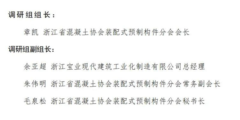 应邀参加本次会议的领导和嘉宾有浙江省建筑科学设计研究院有限公司总经理赵宇宏教授级高工、浙江省混凝土协会副会长徐国孝教授级高工、浙江省混凝土协会顾问陈敏教授级高工、杭州市建筑业协会新型建筑工业化分会秘书长应华香、宁波市建筑业协会装配式建筑分会副秘书长邵茹、绍兴市建筑产业现代化发展联盟秘书长何余良先生、温州市绿色建筑与建筑工业化促进会会长张武,以及浙江宝业现代建筑工业化制造有限公司、浙江中民筑友科技有限公司、浙江广天构件股份有限公司、台州普立德建筑科技有限公司、浙江新邦远大绿色建筑产业有限公司、锦萧建筑科技有限公司、浙江三一筑工科技有限公司、丽水金汤建筑安装科技有限公司、浙江天晟建材股份有限公司、浙江省建材集团浙西建筑产业化有限公司、舟山恒众建筑科技发展有限公司等11家企业的负责人。