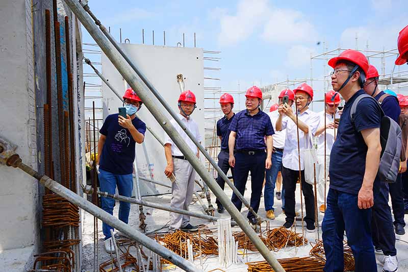 当天上午,调研团领导一行首先来到位于上海市闵行区七宝镇的古美北社区S110501单元27-01地块项目施工现场进行实地参观考察,董事长李军全称陪同。该项目为装配整体式剪力墙结构住宅工程,由上海旭融房地产开发有限公司开发,通州建总集团有限公司施工总承包,锦萧科技承接该项目PC构件生产供货并提供装配指导安装服务。