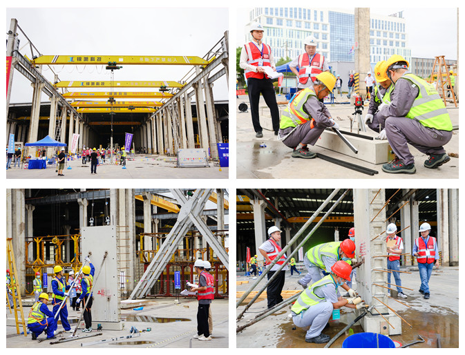 本次竞赛包括理论考试和实操考核两个部分,理论考试占总成绩的30%,实际操作占总成绩的70%。开幕式后,紧张激烈的实操考核正式拉开帷幕,参赛选手们按序就位,迅速投入到各自的“战场”。从材料到成品,是一次对参赛选手技能水平的大检阅,也是一次促进技艺提升的展示交流,展现了装配式建筑产业工人各个工种的技艺魅力。